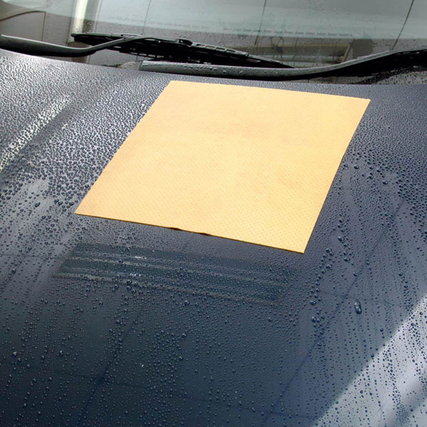 2、洗車吸水セームを水に浸し、一度絞ってから拭き始めます。