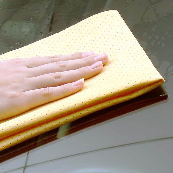 ●洗車後のボディに付いた水滴の拭き取り、窓ガラスやミラーの拭き取りに最適なセーム調のクロスです。