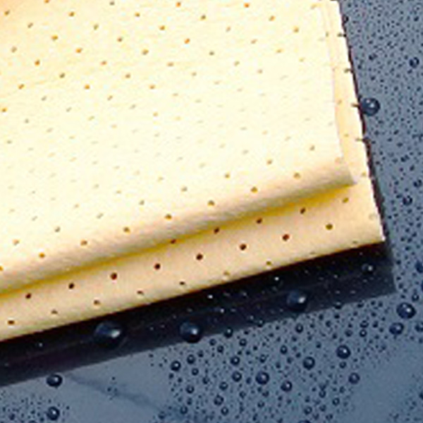 ソフトなタッチで傷つきにくい柔らかな生地感でスムーズな拭き心地です。生地のきめが細かく傷を付けにくいです。 | 独自の穴あき加工クロスの表面に穴あき加工が施されており、高い吸収性能が持続します。 |