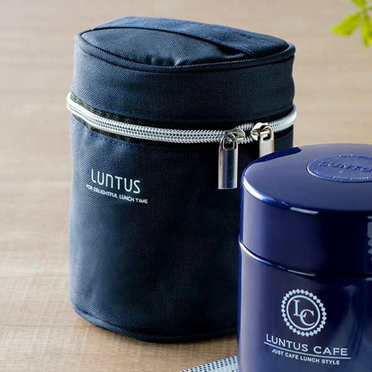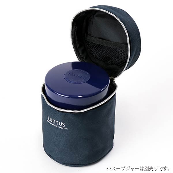 ビジネスバッグにも収まるコンパクトサイズ。大きく開く円形のファスナーは、スープジャーをスムーズに出し入れできます。ケースの内側にはメッシュポケットが付いているので、保冷剤やミニサイズのお手拭き、お気に入りのドレッシングなどが入れられます。