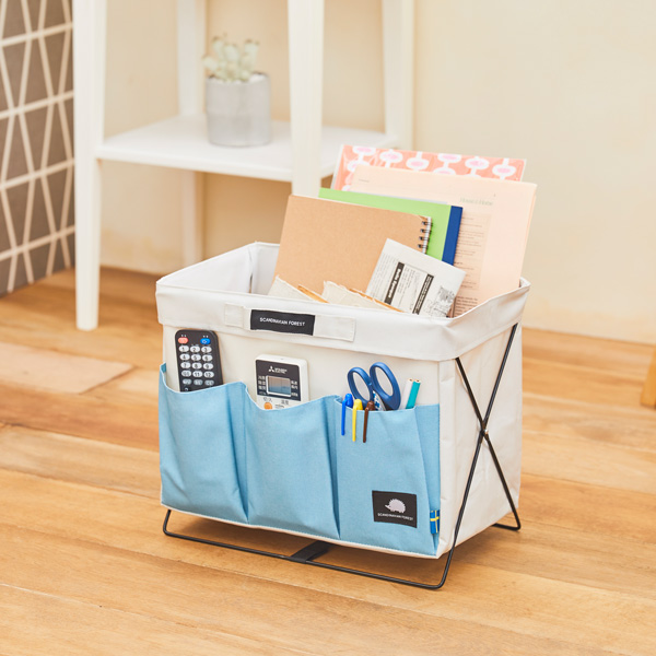 ソファー横においてブランケットを収納したり、ポケットも付いているので、リモコンなど迷子になりがちな物の収納にもオススメです。 シンプルで温かみのある北欧テイストのデザインがお部屋の雰囲気になじみます。