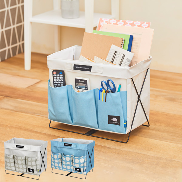 リビングバスケット スカンジナビアフォレスト 収納ボックス マガジンラック 小物収納 小物ケース ( リビング収納 リモコンラック リモコン マガジン 雑誌 リビング バスケット ラック 持ち手付き 小物入れ 文房具 ) 【 ドットブルー 】