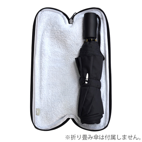 折り畳み傘をリュックやカバンに付けて運べるアンブレラケースです。裏地には抗菌消臭加工を施した吸水性抜群のマイクロファイバータオル「抗菌カラリ」を採用しています。濡れた傘の水分をしっかり吸収し、臭いの元となる雑菌の繁殖を防ぎます。表地は伸縮性のあるウェットスーツ素材で傘をすっきり包み込み、水分を外に漏らすことなく安心して持ち運べます。