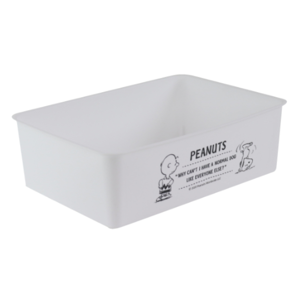 可愛らしいスヌーピーの柄でありながら落ち着いたカラーで、どんな場所にも馴染みやすい収納ボックスです。ロータイプなのにたくさん収納ができ、高さが限られているところで重宝するMサイズです。
