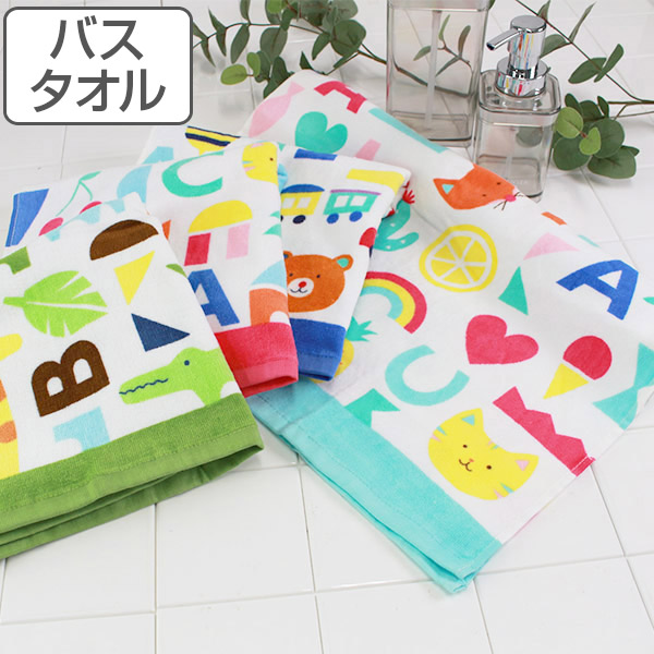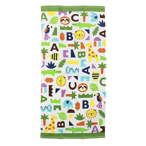 バスタオル 50×100cm コンパクトバスタオル ポケットタウンニッコニコ タオル ( タオル スポーツタオル 動物 車 男の子 女の子 プール スイミング バス用品 バスグッズ 風呂用品 お風呂用品 アニマル ポップ ) 【 グリーン 】