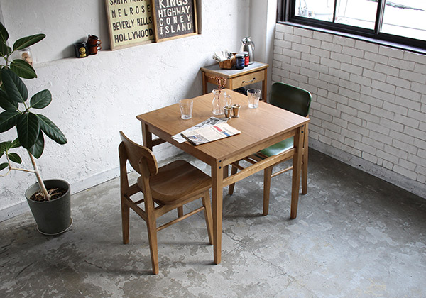 懐かしい雰囲気を感じさせる、ソフトヴィンテージテイストのダイニングテーブルです。天然木ならではの風合いを楽しむことが出来ます。