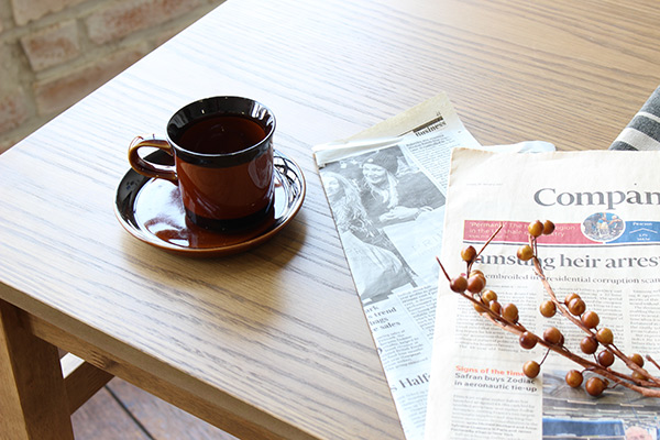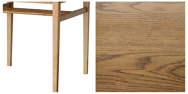 | 無垢材を使用した脚 脚部はラバー無垢材を使用した、丈夫なつくりになっています。 | 木目が美しい天板 オーク材の突板を使用しているため、表情豊かな美しい木目をお楽しみいただけます。 |