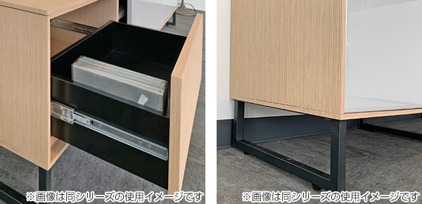 | 引出し収納 テレビ周りの小物類を整理できます。フルエクステンションレール仕様なので開閉がスムーズです。 | お掃除ロボット対応 本体下の空間にゆとりがあるため、お掃除しやすくなっています。 |