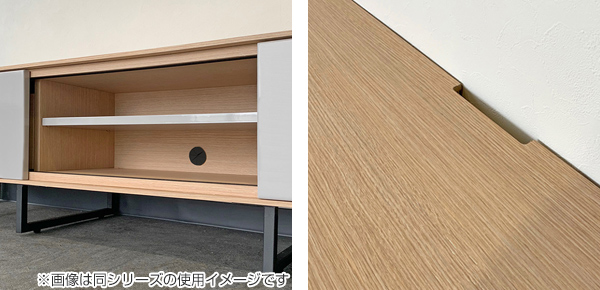 | 配線穴 AV機器などのコードを背面に通せるようになっているので、配線がごちゃつかずスッキリした印象になります。 | コードスリット 壁にぴったり付けてもテレビの配線を裏に通すことができます。 |