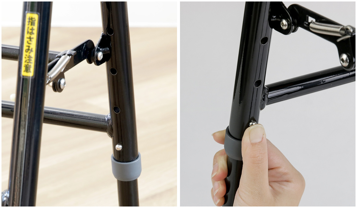 ボタンを押しながら脚部をスライドさせる簡単な操作で、高さを5段階に調節することができます。背の高い人から小柄な方まで使い方に応じて70~85cmまで調節が可能です。