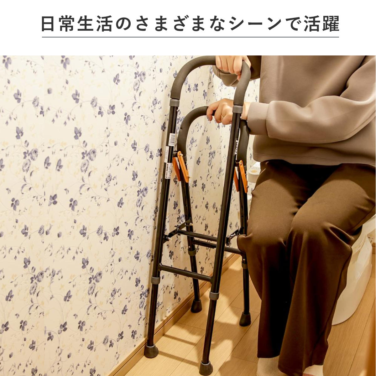手すりとして、杖として、立ち上がりから移動・体の支えまで、日常生活をサポートします。トイレや洗面所、玄関での靴の脱ぎ履きなど家中でご使用いただけます。