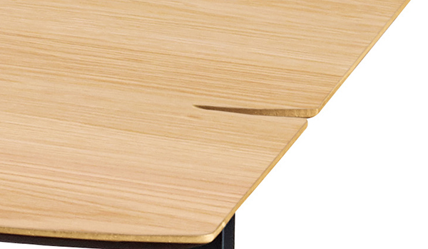 天板にはアクセントとして、木材の欠けを思わせる切り込みを入れています。シンプルでありながら個性を感じるデザインです。
