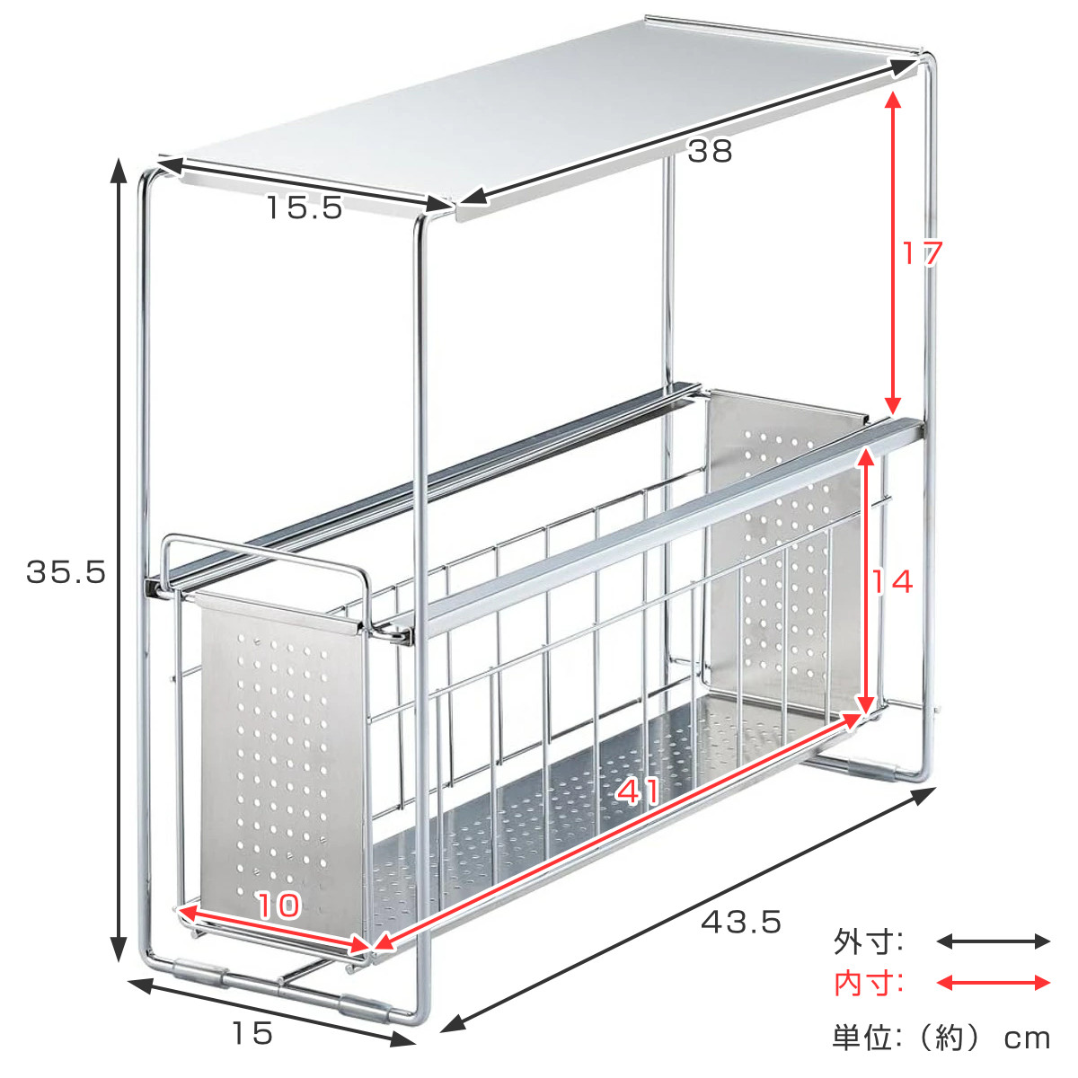 シンク下収納 シンク下スライド収納 1段 幅15cm ( シンク下収納ラック 引き出し付き スリム シンク下 コンロ下 キッチンストッカー ステンレス スライドラック 隙間収納 引出し ワゴン キッチン 洗面所 収納 おしゃれ 日本製 )