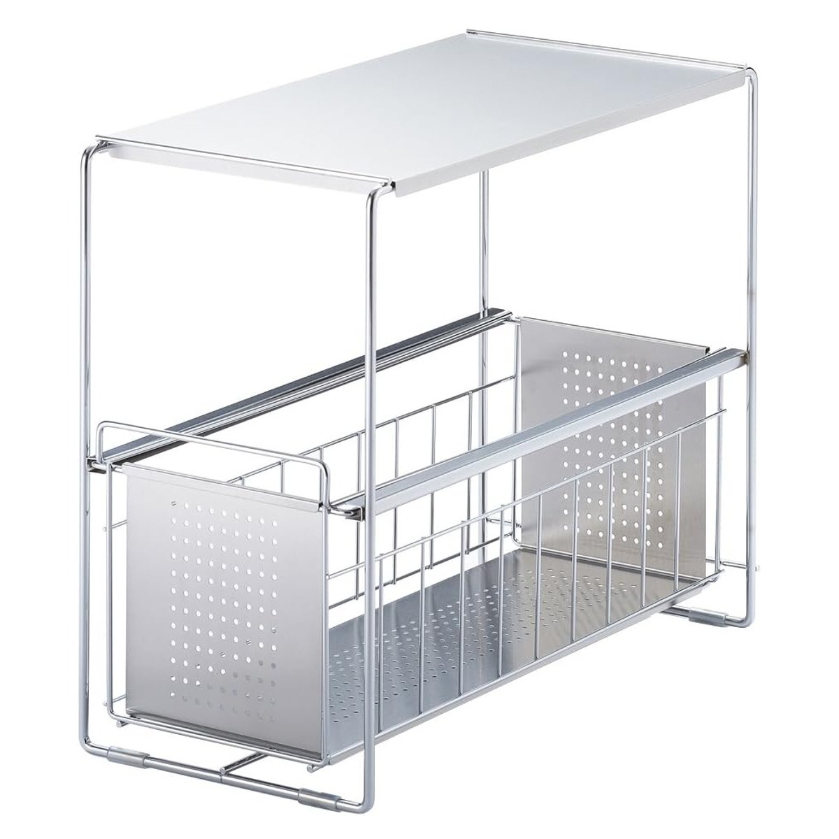 シンク下収納 シンク下スライド収納 1段 幅20cm ( シンク下収納ラック 引き出し付き スリム シンク下 コンロ下 キッチンストッカー ステンレス スライドラック 隙間収納 引出し ワゴン キッチン 洗面所 収納 おしゃれ 日本製 )
