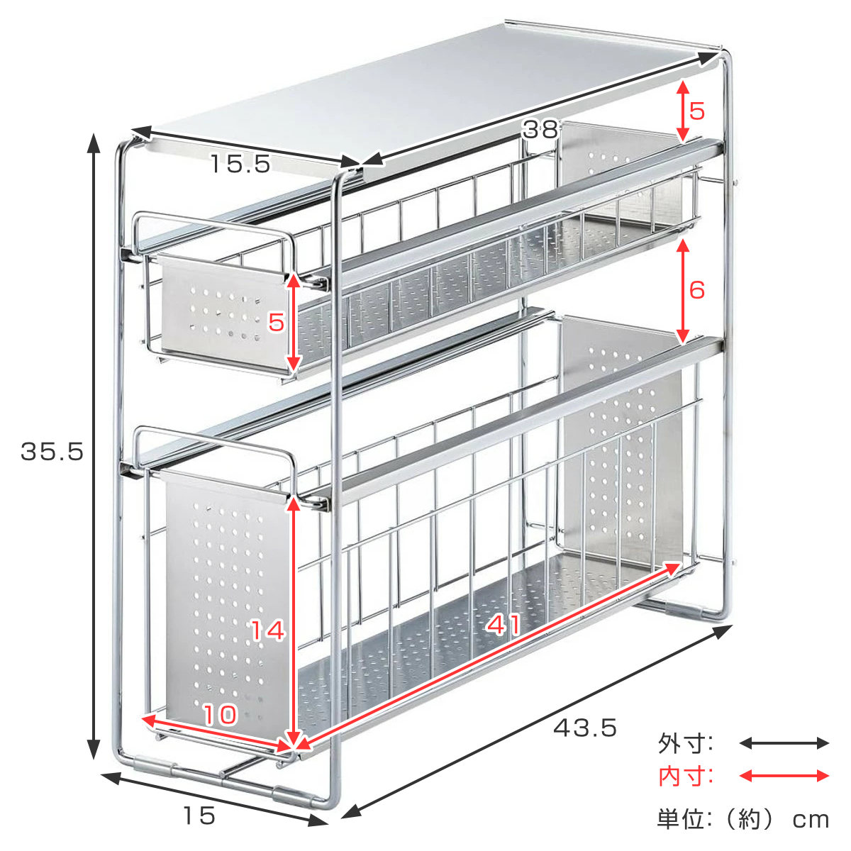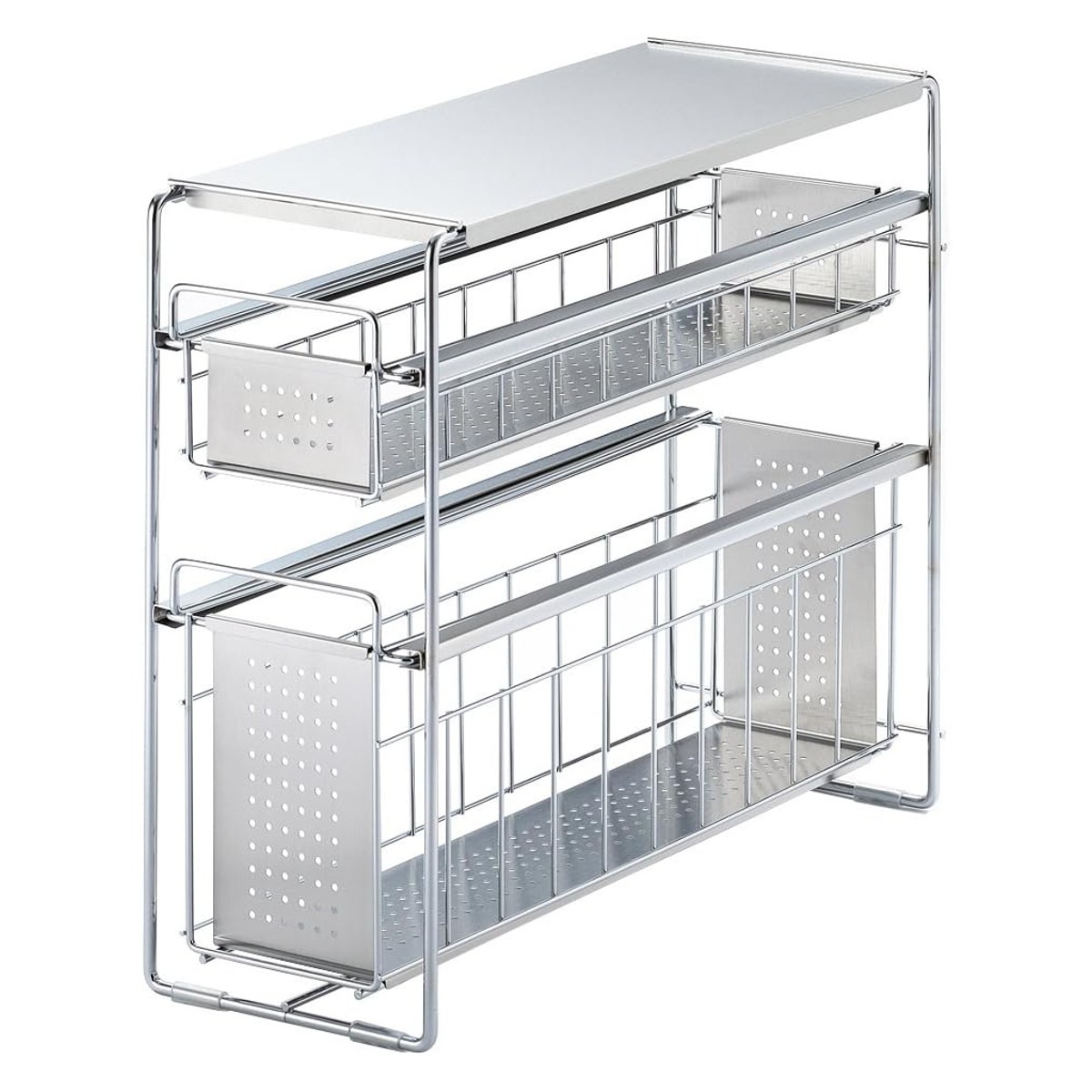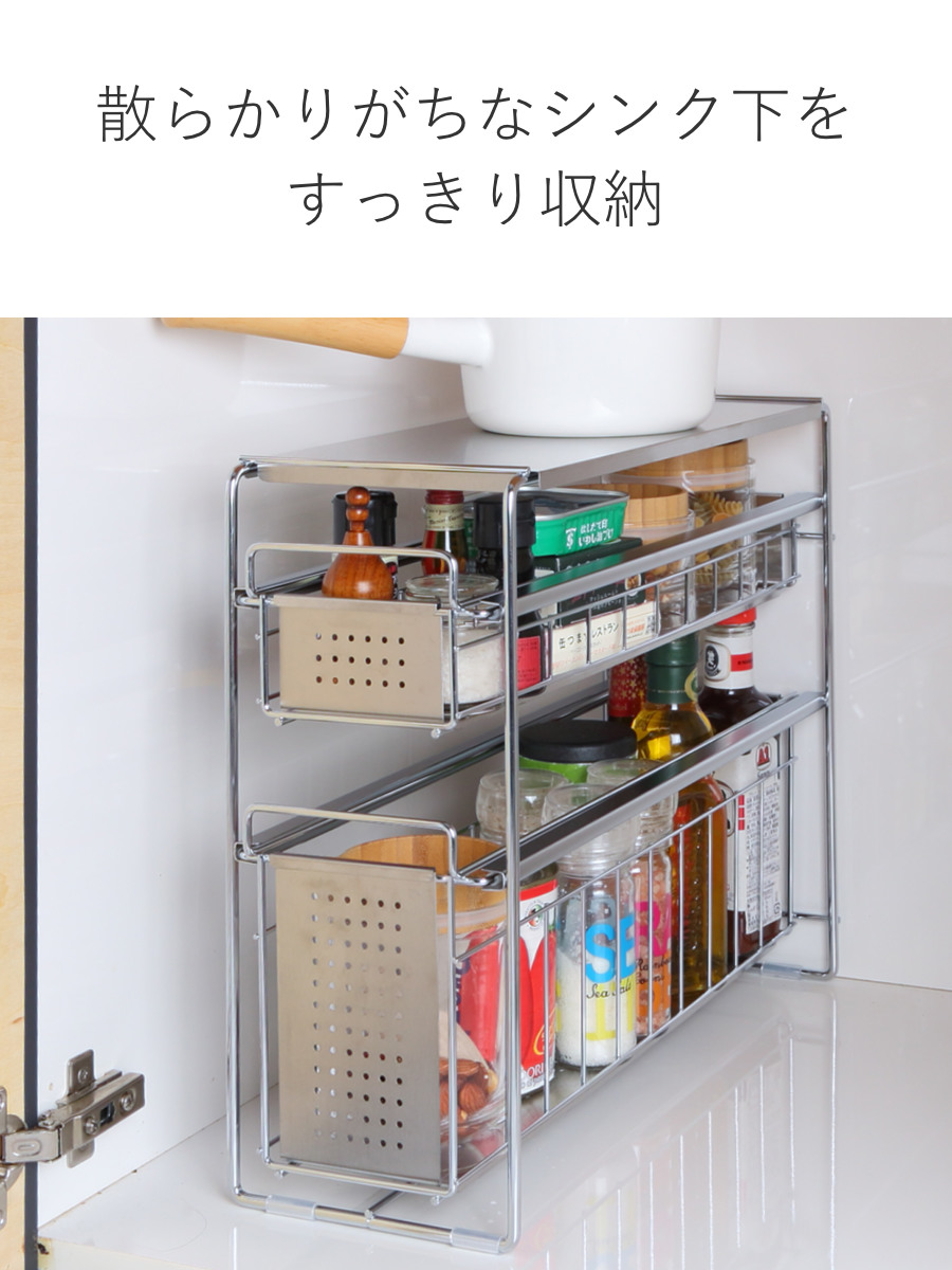 シンク下収納 シンク下スライド収納 2段 幅15cm ( シンク下収納ラック 引き出し付き スリム シンク下 コンロ下 キッチンストッカー ステンレス スライドラック 隙間収納 引出し ワゴン キッチン 洗面所 収納 おしゃれ 日本製 )