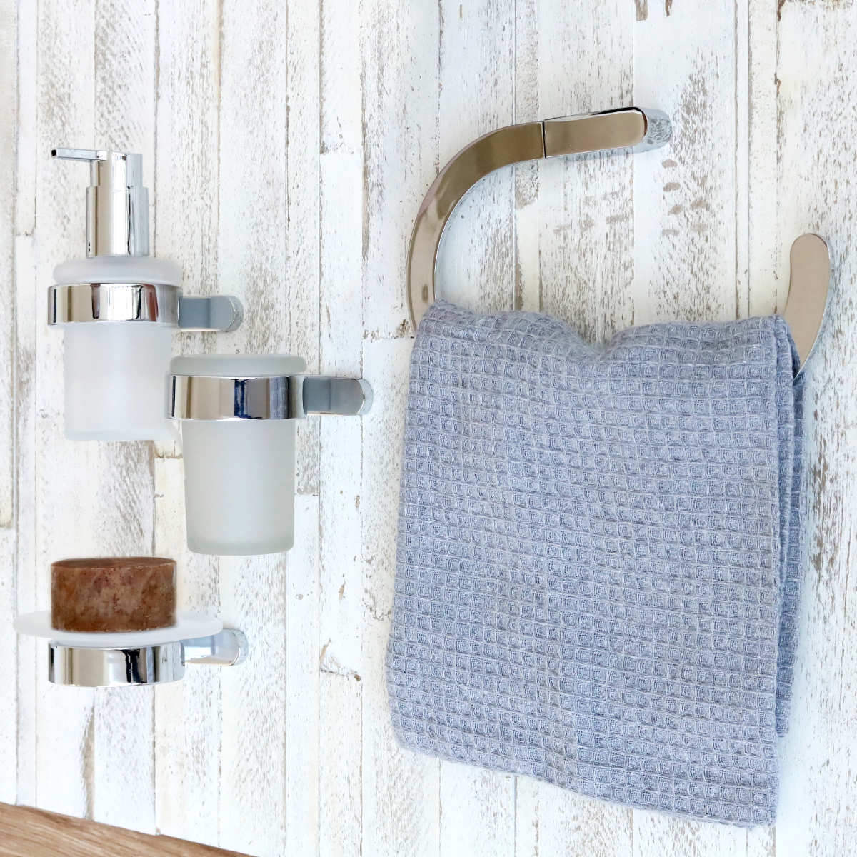 壁面に設置して使える「BISK・NATURA」シリーズの4連フックです。タオルや衣類をサッと掛けられ、すっきりデザインで空間をスタイリッシュに演出します。洗面所はもちろん、お部屋のインテリアにもぴったりなシンプルデザインです。