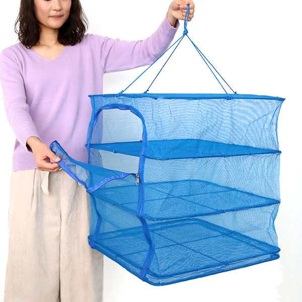 万能干しかご 3段 L 50x50x55cm ( ほしかご 干しかご 乾物ネット 干し網 一夜干し 干物 野菜干し ドライフルーツ 防虫 天日干し 虫除けネット 虫よけネット 折り畳み )