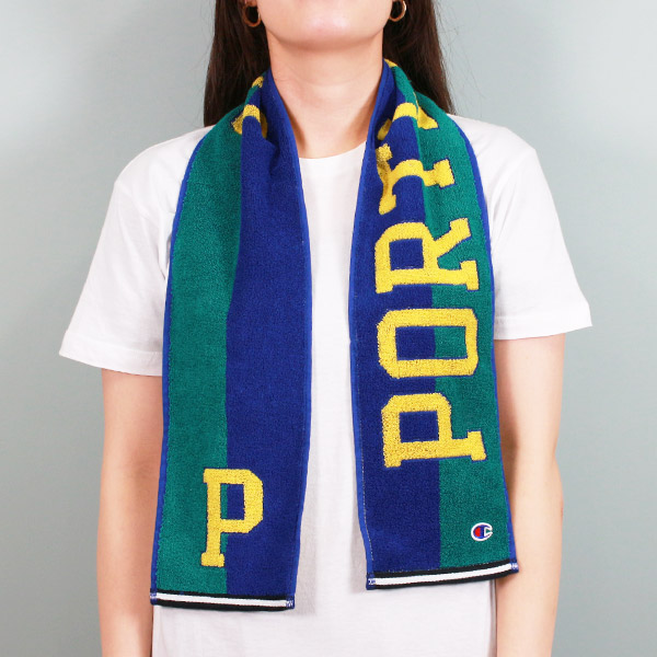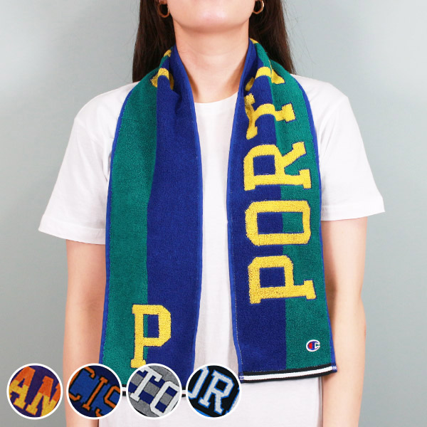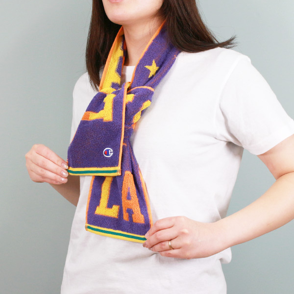 大きな文字のデザインと刺繍がお洒落な、チャンピオンのマフラータオルです。運動時はもちろん、スポーツ観戦やアウトドア、野外フェスなどでもお使いいただけます。首に巻きやすいサイズなので、両手が空き、持ち運びにも便利です。