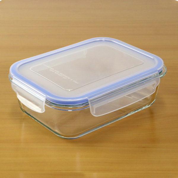 ●中身が見やすい耐熱ガラス製で、容量約1050mlの長方形保存容器です。