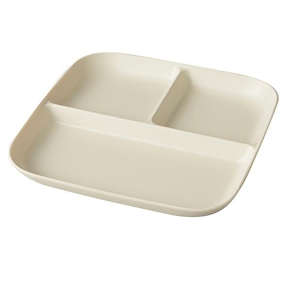 ランチプレート 25cm プラスチック カームディッシュ 皿 食器 洋食器 日本製 ( 電子レンジ対応 食洗機対応 ランチ皿 仕切り皿 四角 仕切皿 スタッキング ワンプレート お皿 角 割れにくい ) 【 アイボリー 】