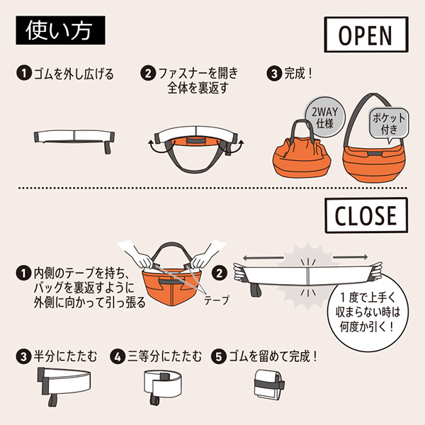 買い物やおでかけ、畳めばコンパクトになるので旅行や持ち歩き用のサブバッグにもおすすめです。