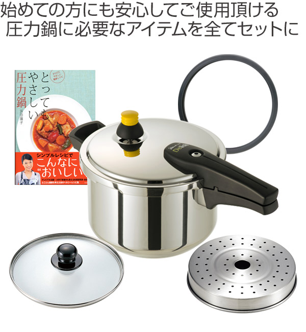 | 内容量 | 1個 付属品:蒸しす、ガラス蓋、替えパッキン、とってもやさしい圧力鍋本 |