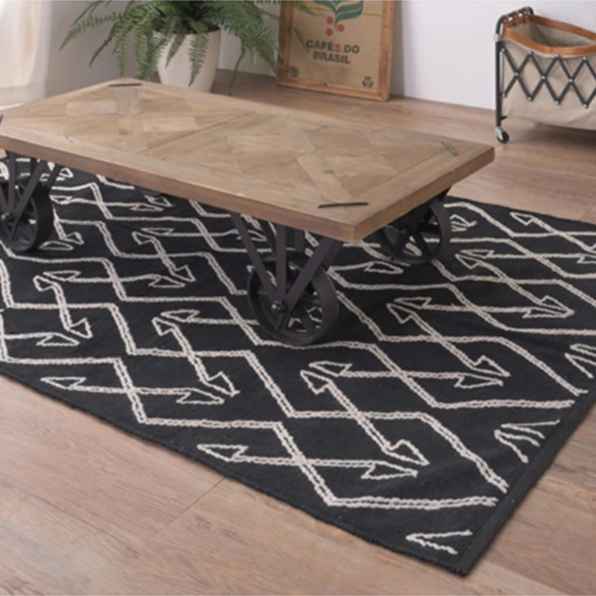 ラグ 幾何学模様 ラグマット 130×190cm ( ラグマット カーペット 絨毯 マット コットン100% 肌に優しい 子ども お年寄り 天然素材 ホットカーペット対応 床暖対応 おしゃれ 北欧風 バッグ付き )
