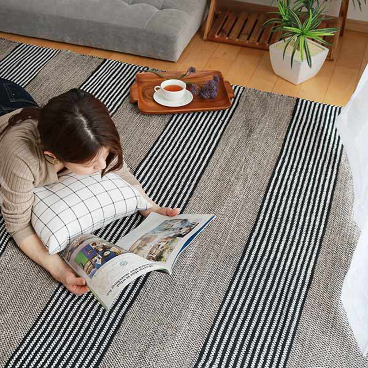 ラグ カーペット コットン100% 130×190cm ( ラグマット 絨毯 マット 折りたためる 収納 コンパクト 床暖 ホットカーペット 対応 収納袋付き オリジナルバッグ付き フリンジ ストライプ 綿 100% )
