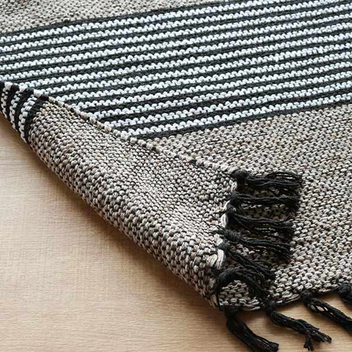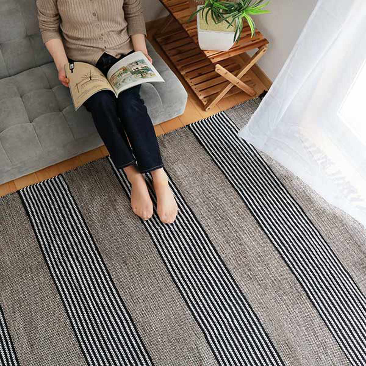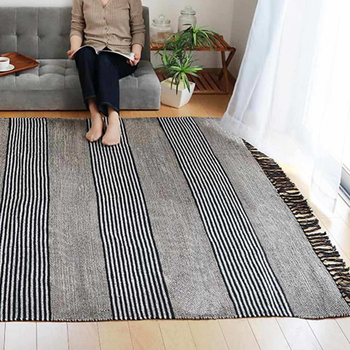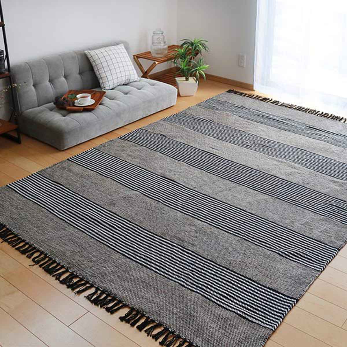 ラグ カーペット コットン100% 170×230cm ( ラグマット 絨毯 マット 折りたためる 収納 コンパクト 床暖 ホットカーペット 対応 収納袋付き オリジナルバッグ付き フリンジ ストライプ 綿 100% )