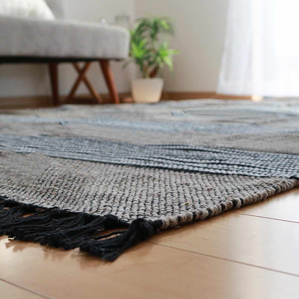 インド製コットン100%で、思わず素足で踏みたくなる肌触りです。コットンなので、硬くなく折りたたんで置いておくことが出来ます。床暖房、ホットカーペットに対応可能のため、1年中お使いいただけます。