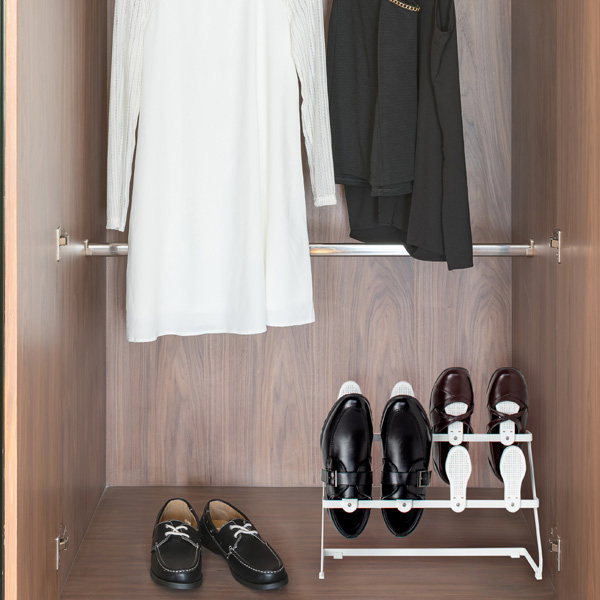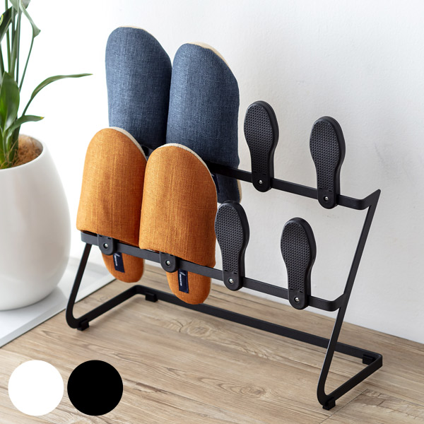 シューズラック スリッパラック 珪藻土 2段 4足用 ( カラリ シューズ ラック シューズケア 珪藻土ボール 入り 玄関 靴 吸湿 乾燥 湿気 消臭 ニオイ 対策 繰り返し 使える お手入れ ブラック ホワイト )【 ホワイト 】