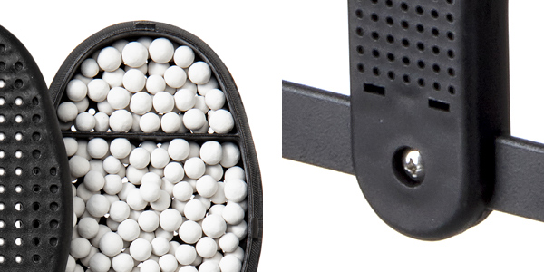 | つま先部分まで珪藻土 匂いや湿気が溜まるつま先部分までしっかり珪藻土ボールが入っているので衛生的です。 | 簡単な組み立て式 珪藻土入りタブレットの部分は、取り外しが可能な組み立て式です。 ※ドライバーは付属しておりません。 |