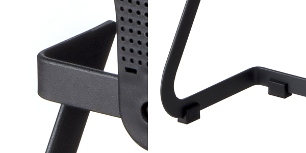 | コーディングされた表面 本体部分は落ち着きがあるマットなカラーで、表面はコーディングされているので汚れが付きにくくお手入れがしやすいです。 | 4個の滑り止め付き 付属の滑り止めを前後左右にバランスよく付けると安定感が増します。 |