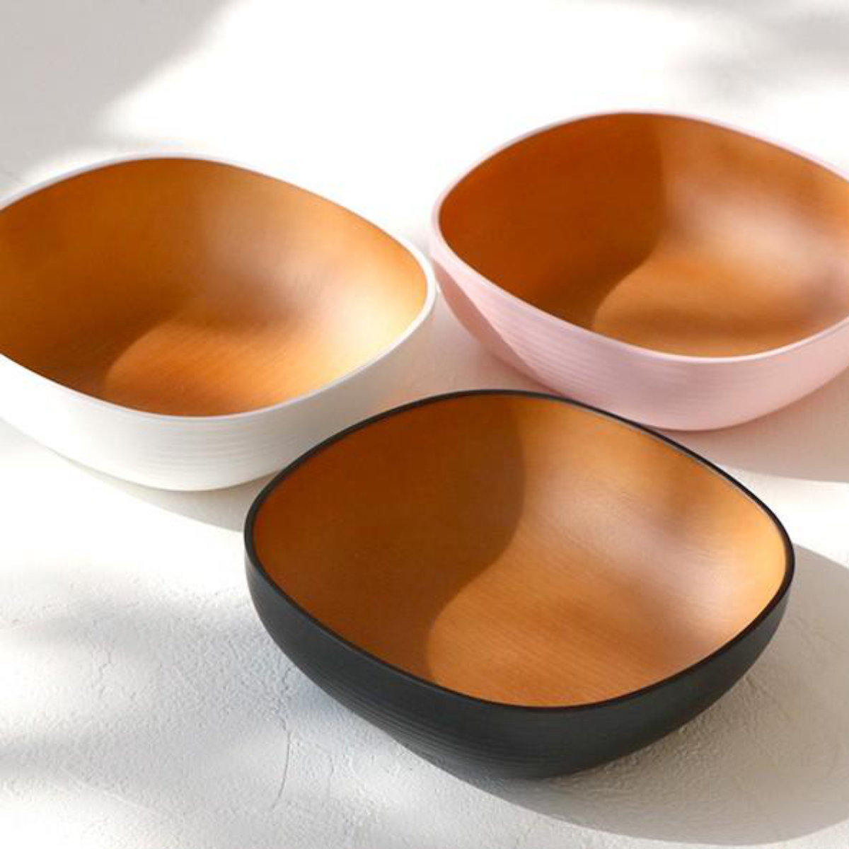 砂紋シリーズは、誰にでも扱いやすい木製風食器です。日本庭園の「砂紋」をイメージし、内塗りにもこだわり、木目調に仕上げました。和食にも洋食にも映える器です。シリーズで揃えると美しく、食卓が華やかになります。