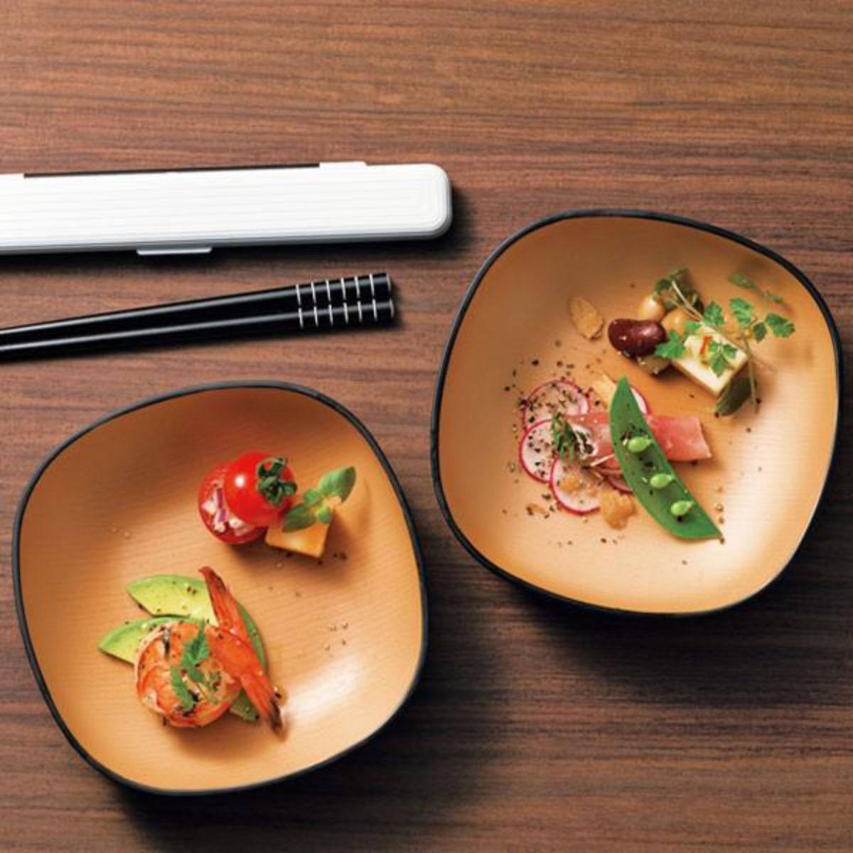 見た目は木製に見えるこちらの食器は、樹脂でできているので木製に比べて乾きが早くお手入れも簡単です。電子レンジ・食洗機どちらにも対応しています。