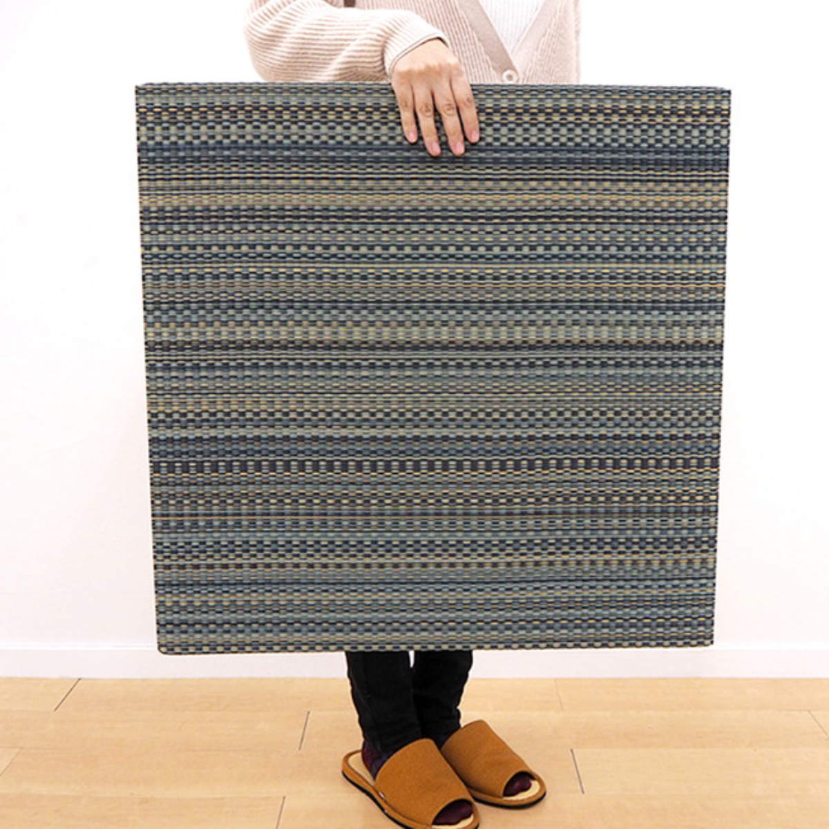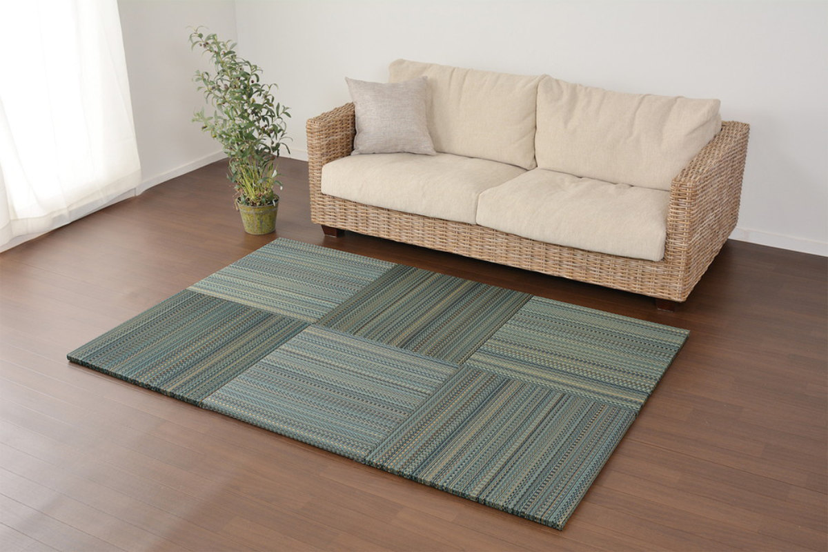 1枚は約65×65cmで、9枚を正方形に並べると2畳分の大きさになります。2人掛けソファーやローテーブルに合わせやすいです。