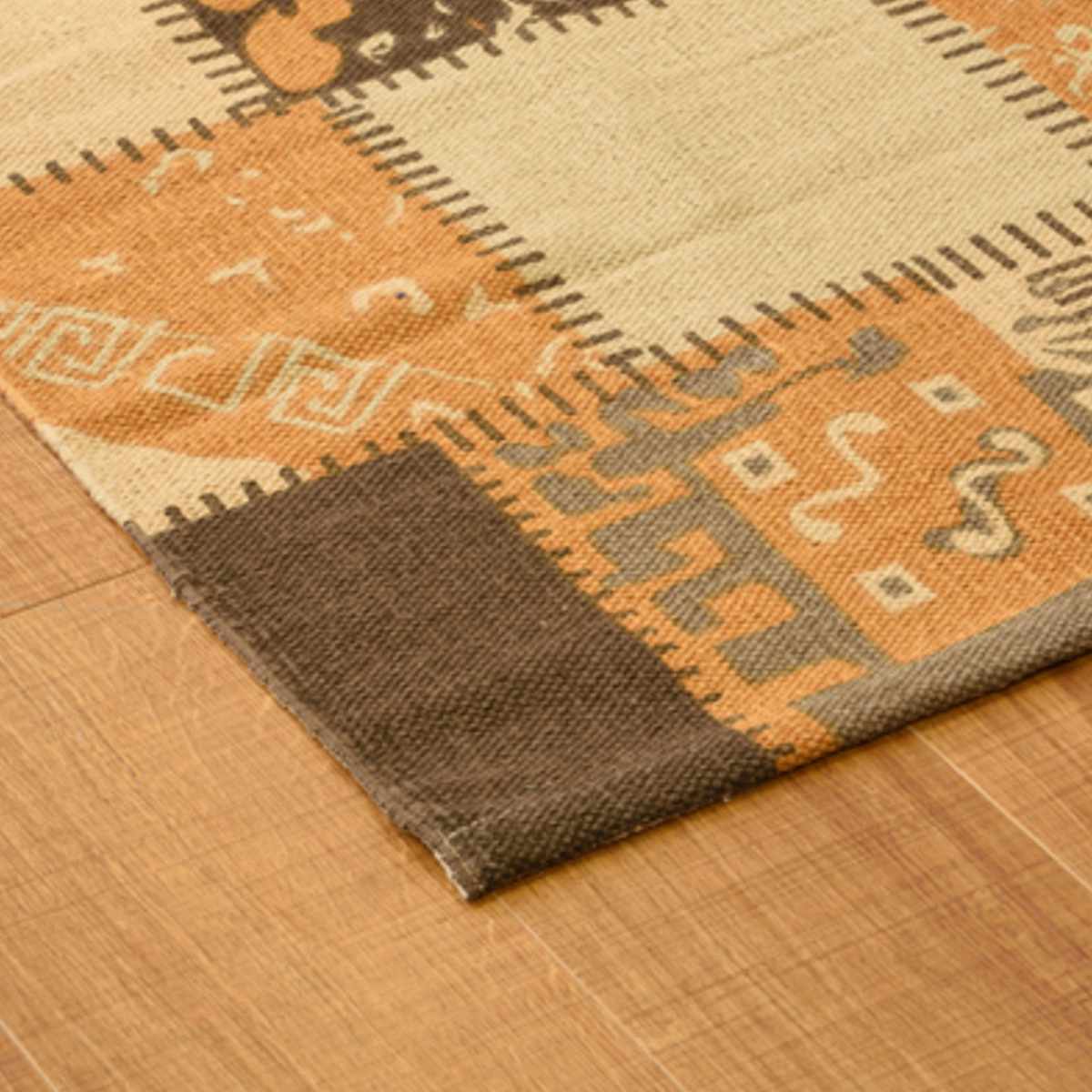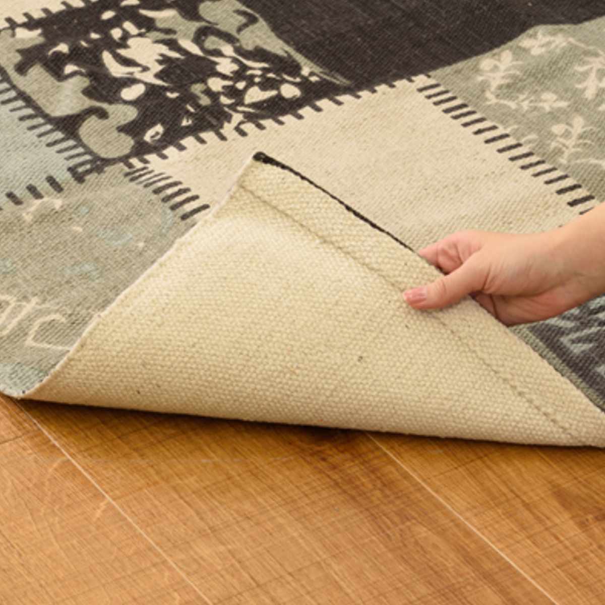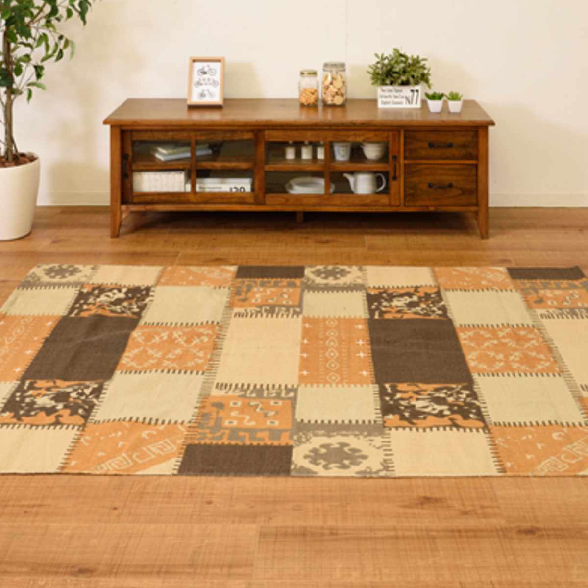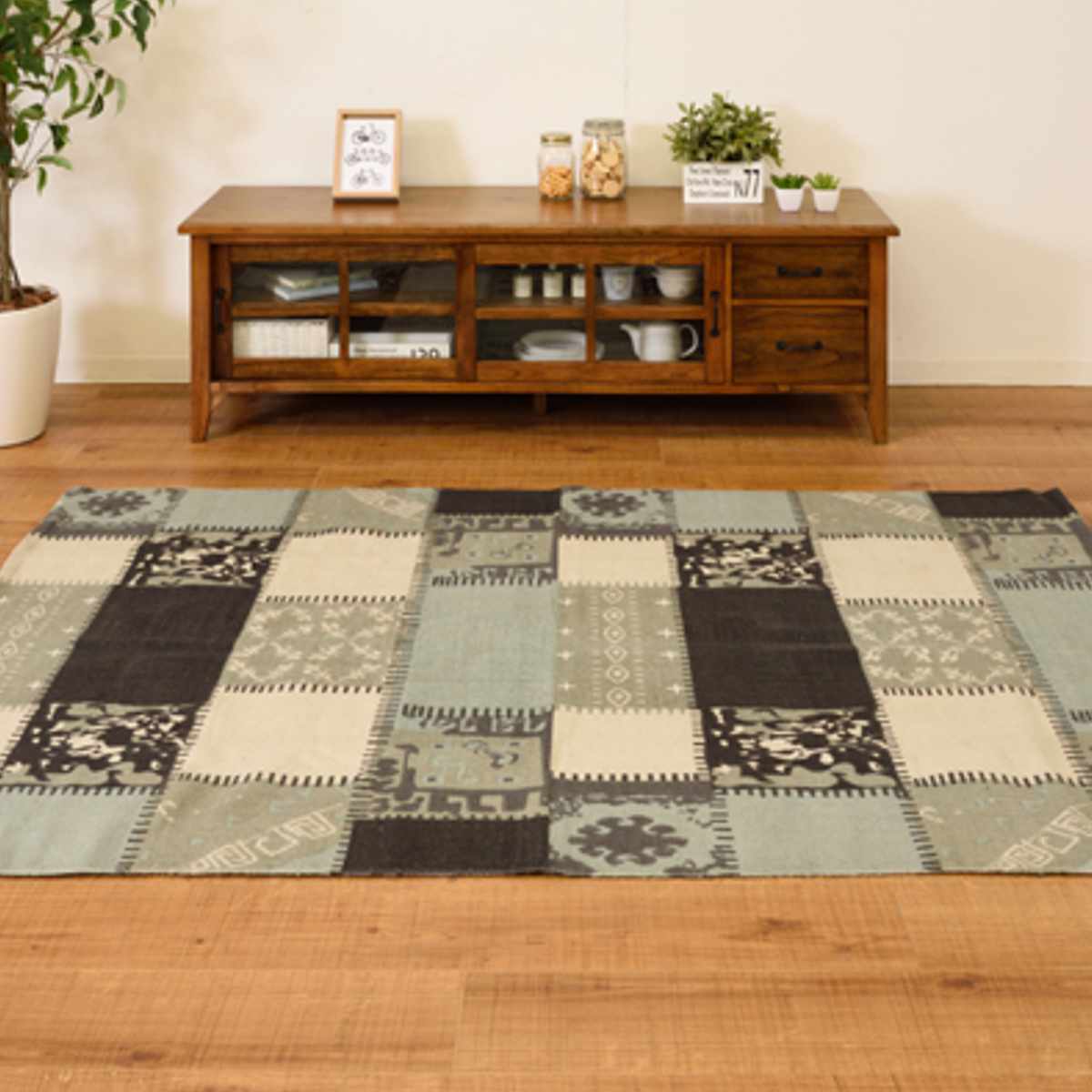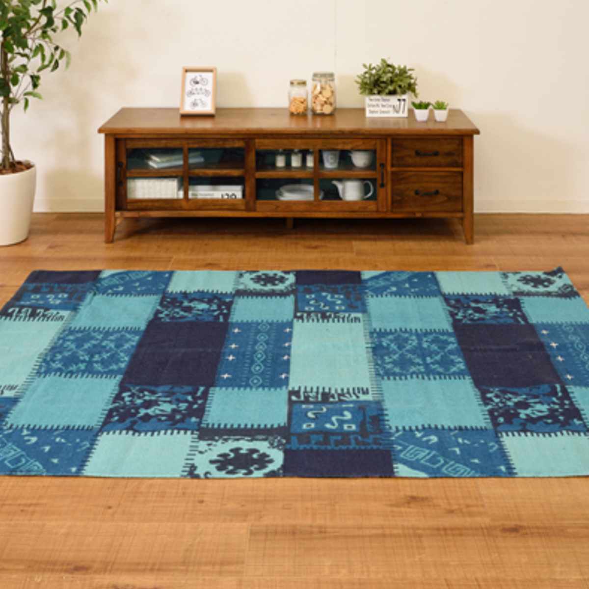 パッチワーク風デザインがアクセントになり、家具を引き立てます。