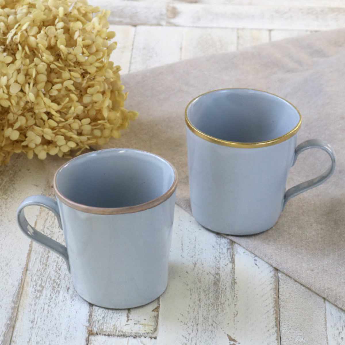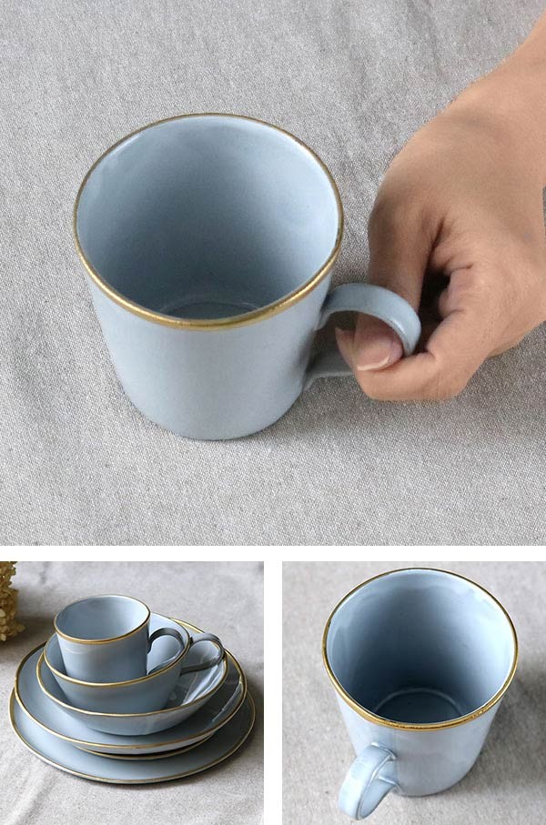 優しいペールグレーに、アクセントとなる縁取りが美しいマグカップです。コーヒーや温かい飲み物を飲むのにぴったりのサイズです。映画を見たり読書をしたりと、ゆっくり過ごしたい時にもおすすめです。無駄のないシンプルなデザインと色味が毎日のティータイムをもっと素敵にしてくれます。