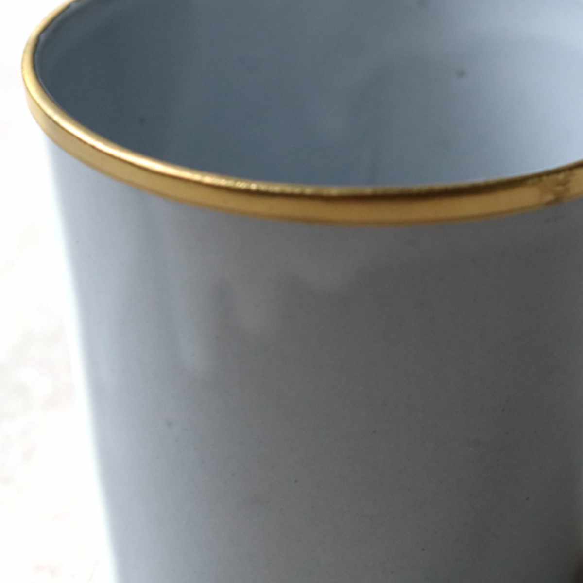 ゴールドとシルバーの縁取りが上品なアクセントになっています。裏面以外は釉薬が塗られ、つるりとした質感です。