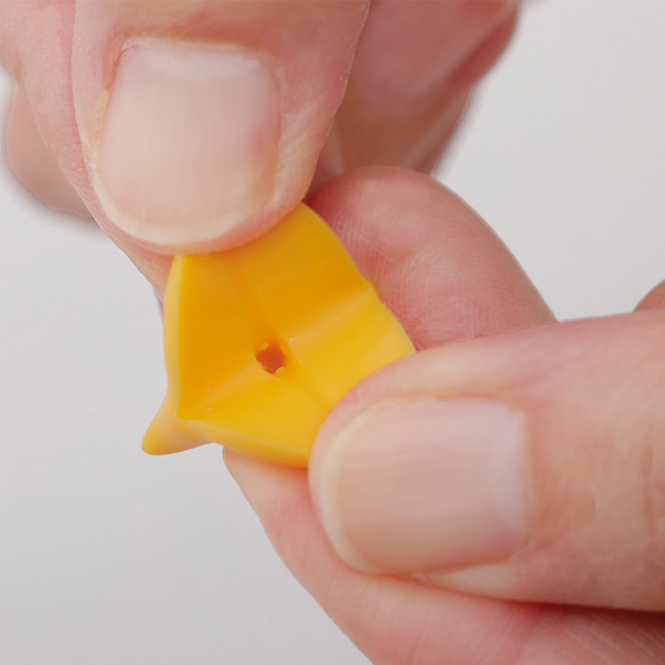 つまようじの持ち手に「カチッ」と差し込むだけです。付けやすくて取れにくい形状となっています。