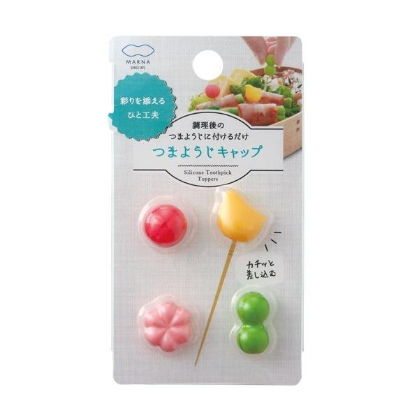 つまようじの持ち手に付けるだけで、お弁当が華やかになるシリコーンキャップです。調理に使ったつまようじにそのまま付けてお使いいただけます。簡単に可愛らしく、お弁当に彩りを添えてくれます。