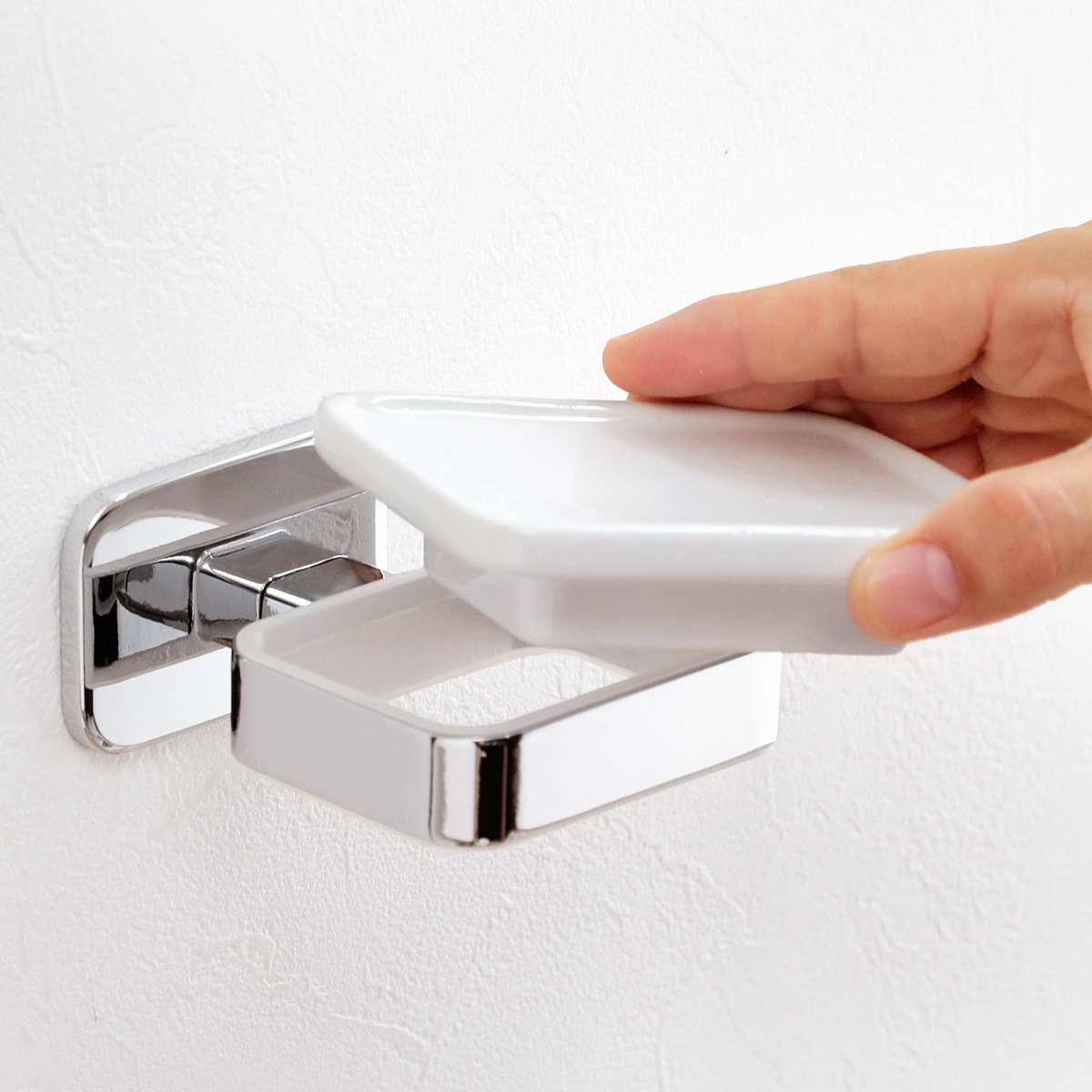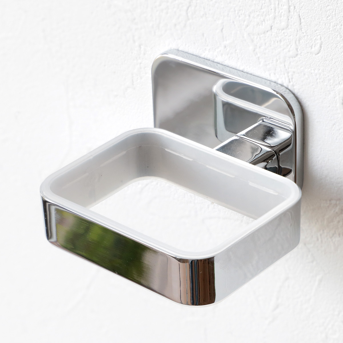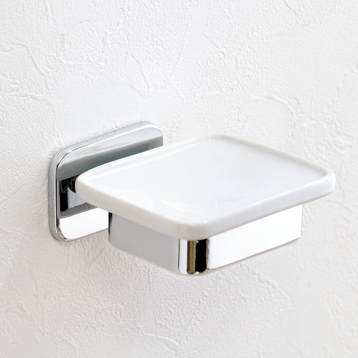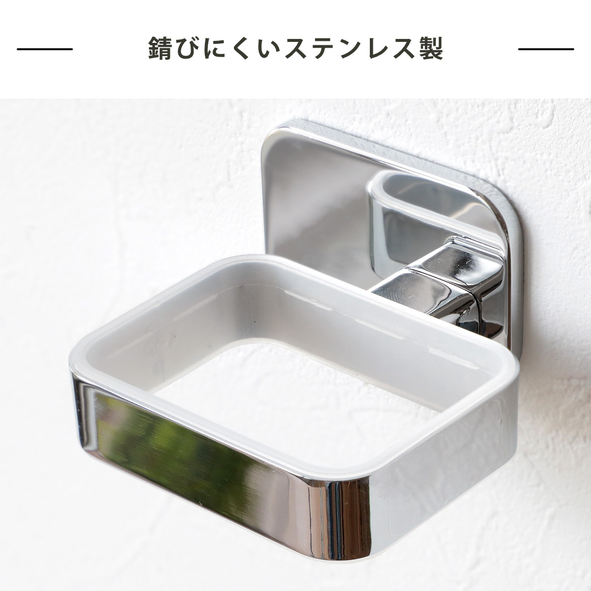 壁面に取り付けて使える「BISK・TORE」シリーズのソープディッシュです。ステンレスの光沢に陶磁器のホワイトカラーが映え、スタイリッシュなデザインで空間をおしゃれに演出します。