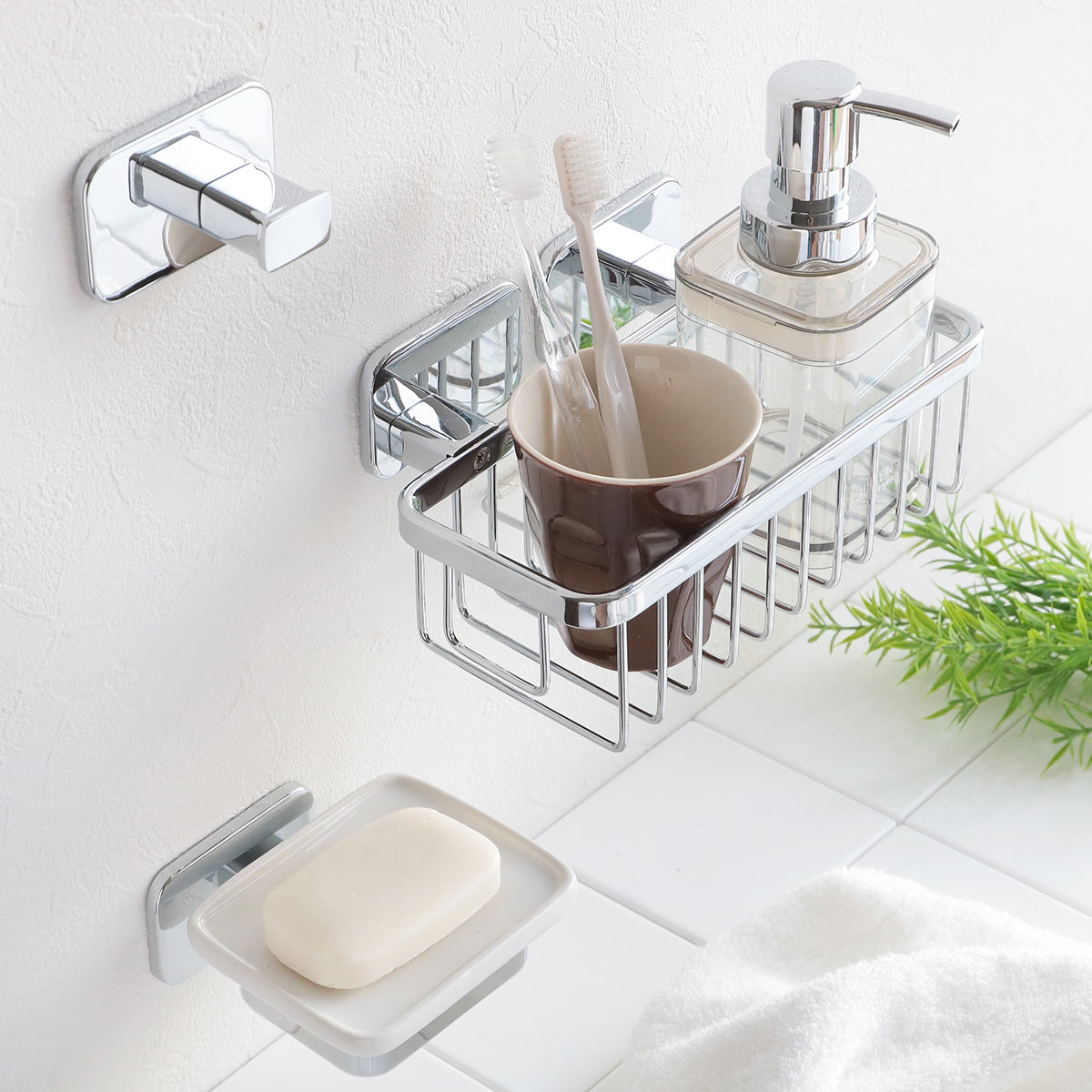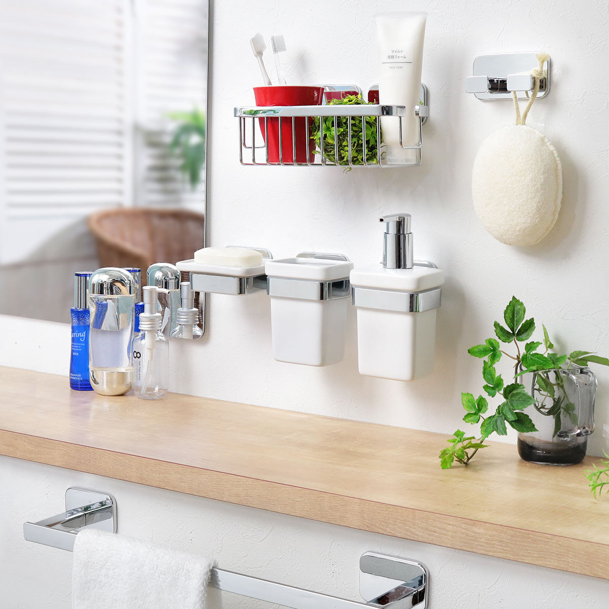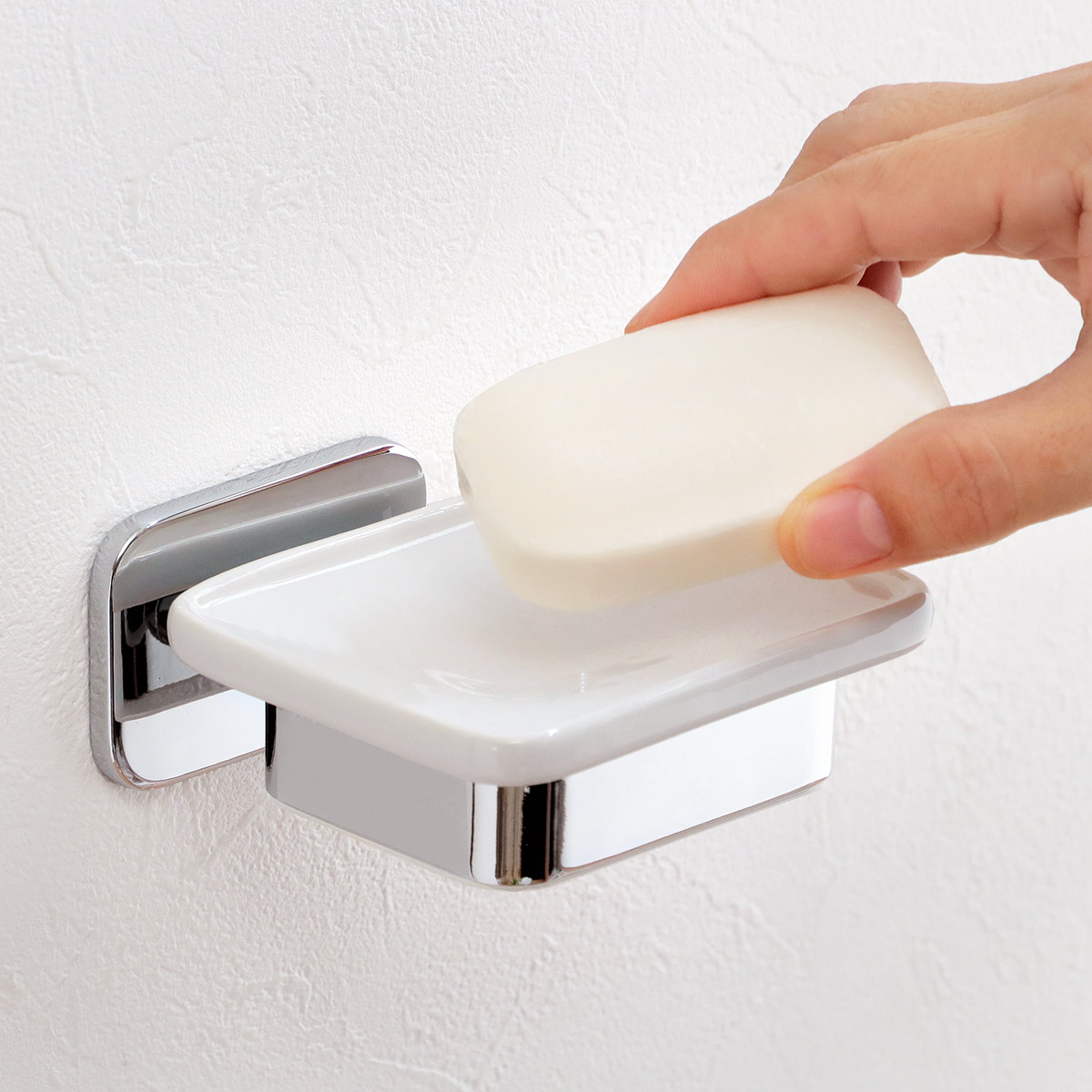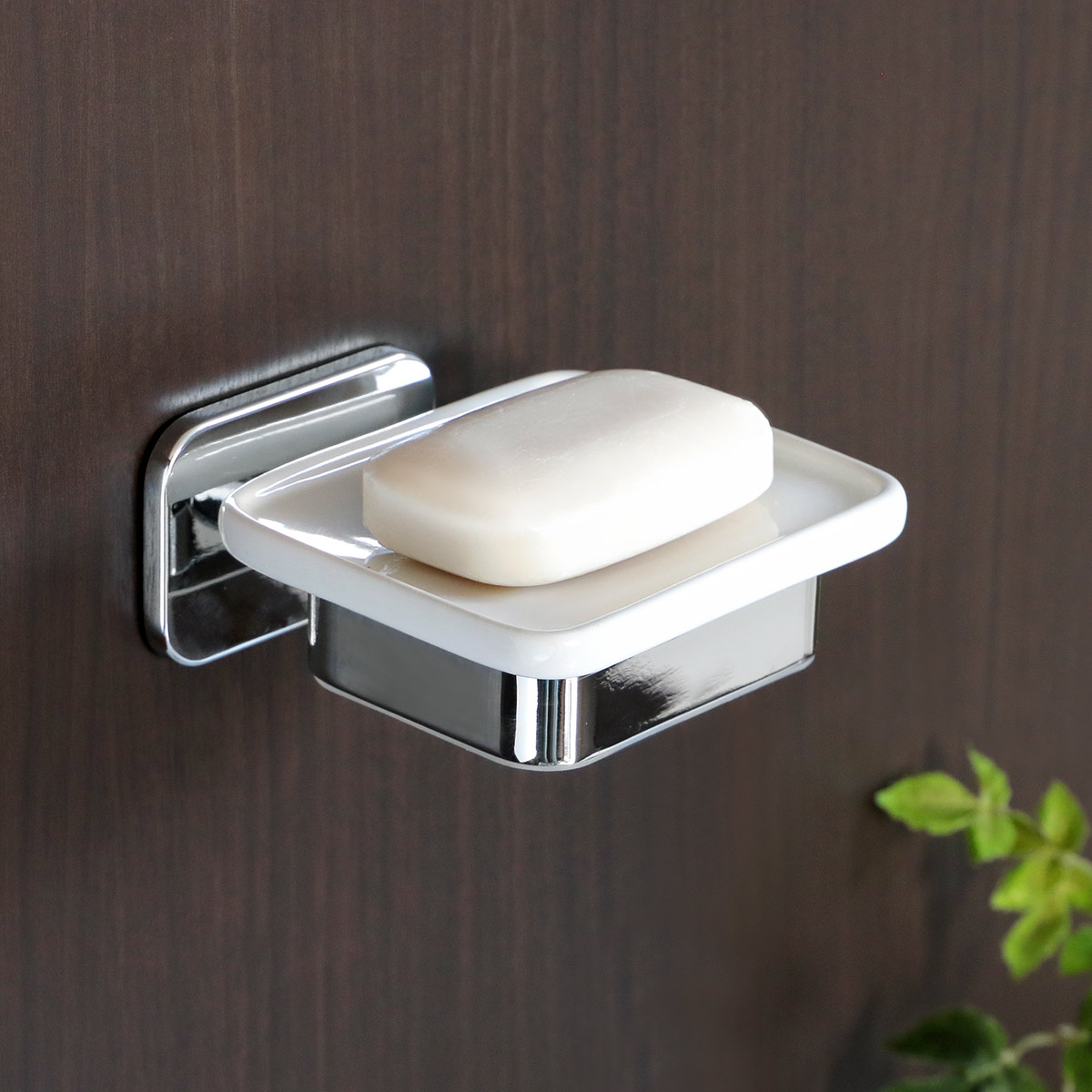 壁面に取り付けて使える「BISK・TORE」シリーズのソープディッシュです。ステンレスの光沢に陶磁器のホワイトカラーが映え、スタイリッシュなデザインで空間をおしゃれに演出します。