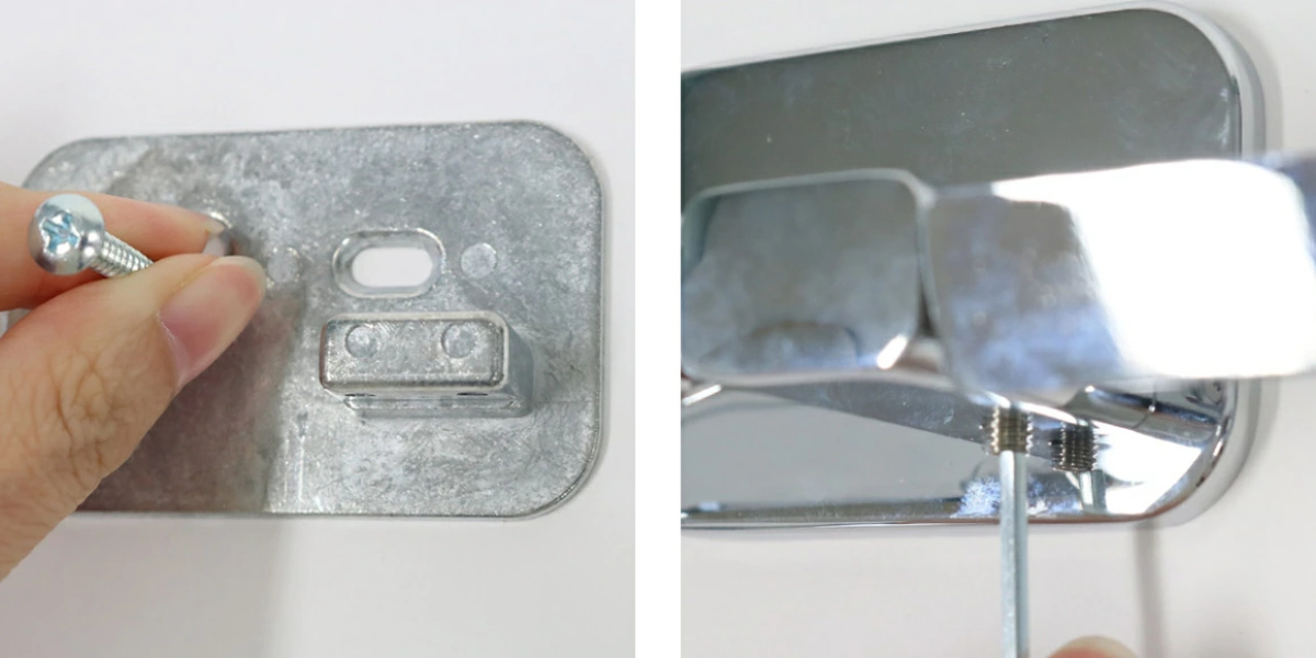| (3)ネジで受けを取り付け、本体を装着します。 | (4)六角レンチでビスを締め、しっかり固定します。 |
