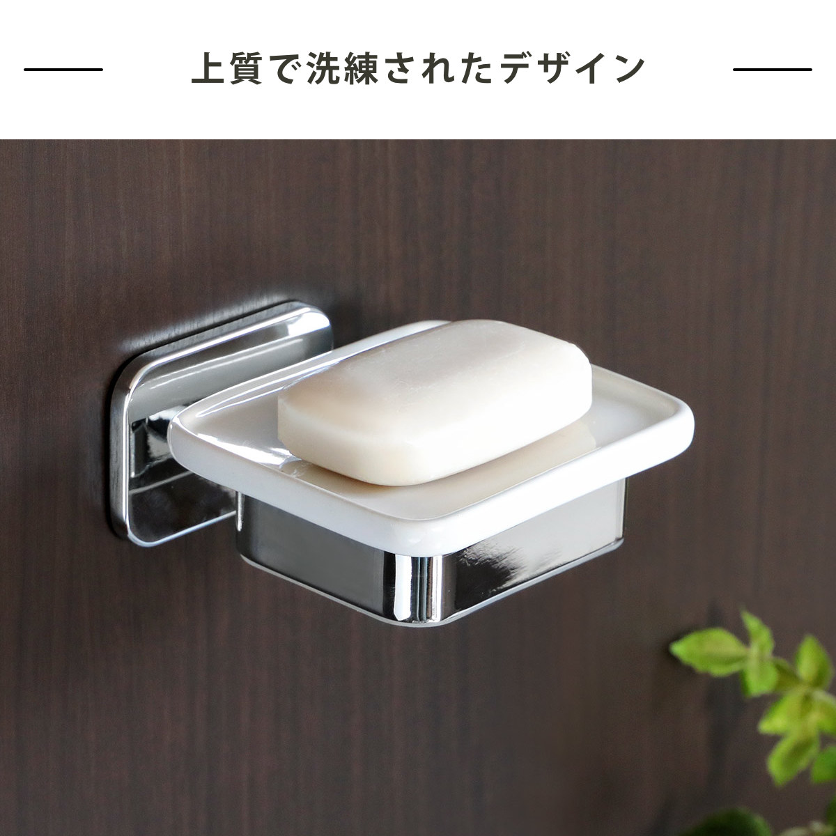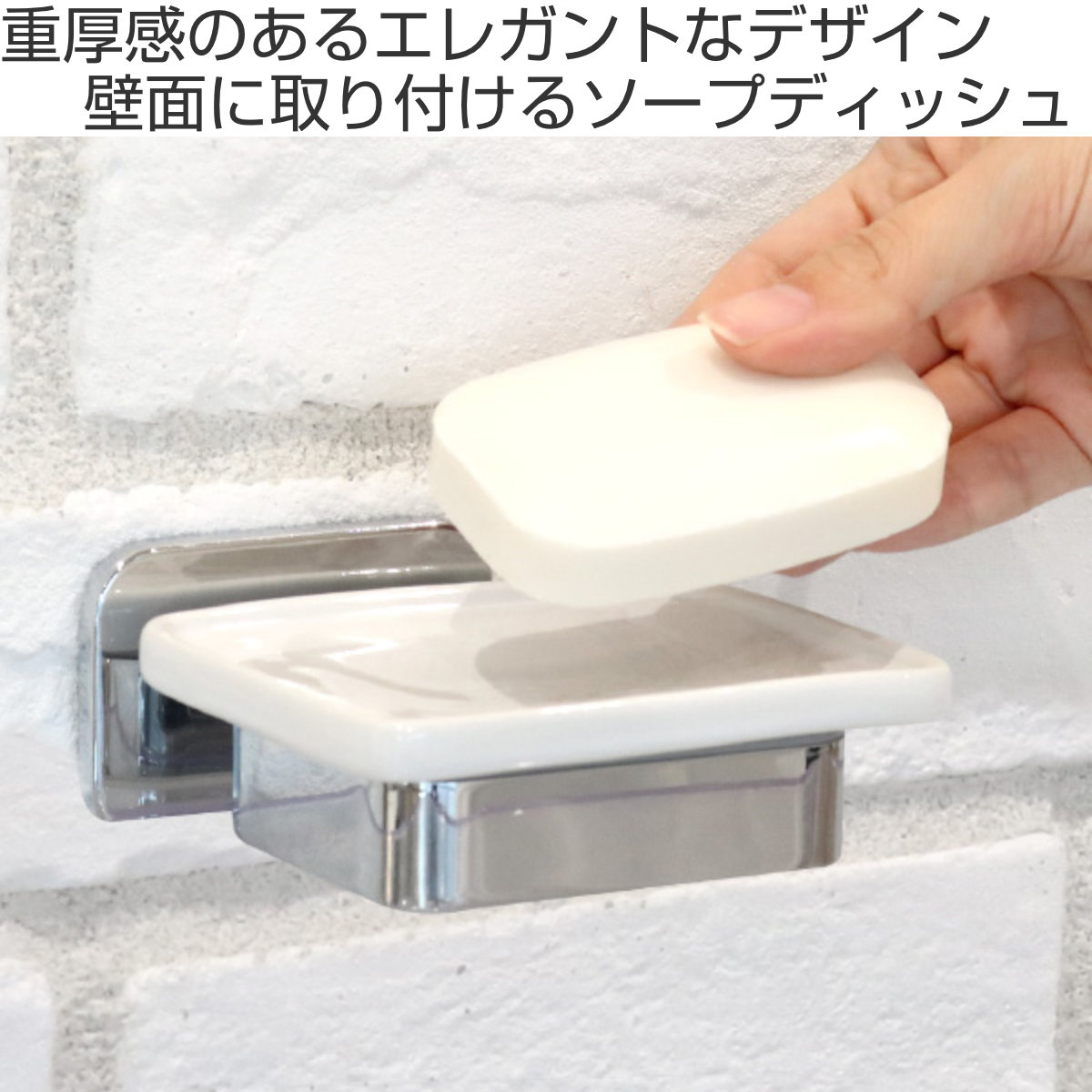 石鹸皿 BISK TORE ソープディッシュ ビスク ( 石鹸置き ソープトレー 石けんトレー ステンレス 陶器 ソープ 石けん置き せっけん 水切り お風呂 バスルーム キッチン 洗面所 洗面収納 バス収納 壁付け 石膏ボード用 DIY )