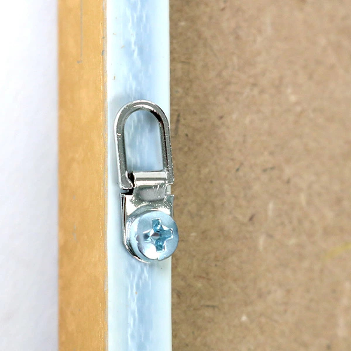 裏面には吊金具が付いています。吊金具の穴に付属の吊り紐を通して、別途ご用意いただいたフックなどで、飾りたい場所にディスプレイできます。