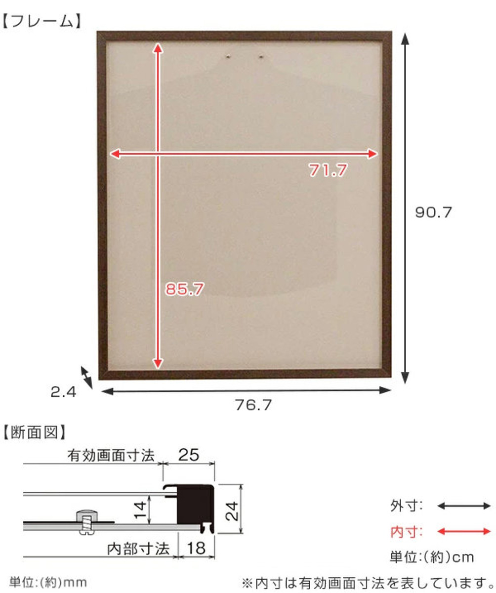 | サイズ | 外寸:約 幅76.7×奥行2.4×高さ90.7(cm) 内寸:約 幅73.1×高さ87.1(cm) 有効画面寸法:約 幅71.7×高さ85.7(cm) 重量:3.8kg |
