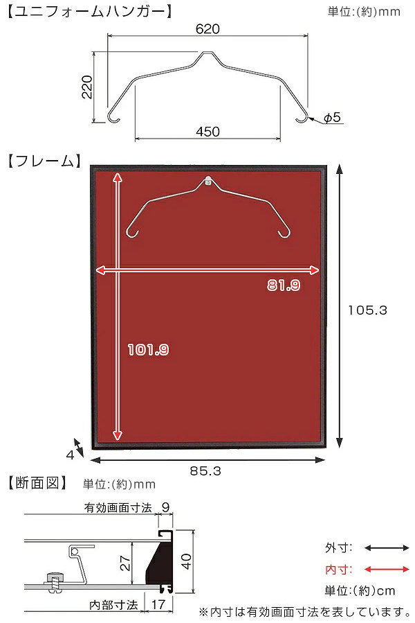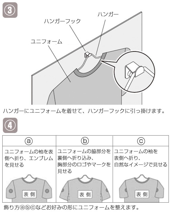 | 内容量 | 1枚 付属品:ユニフォームハンガー、吊り紐、専用フック、短ピン、長ピン |