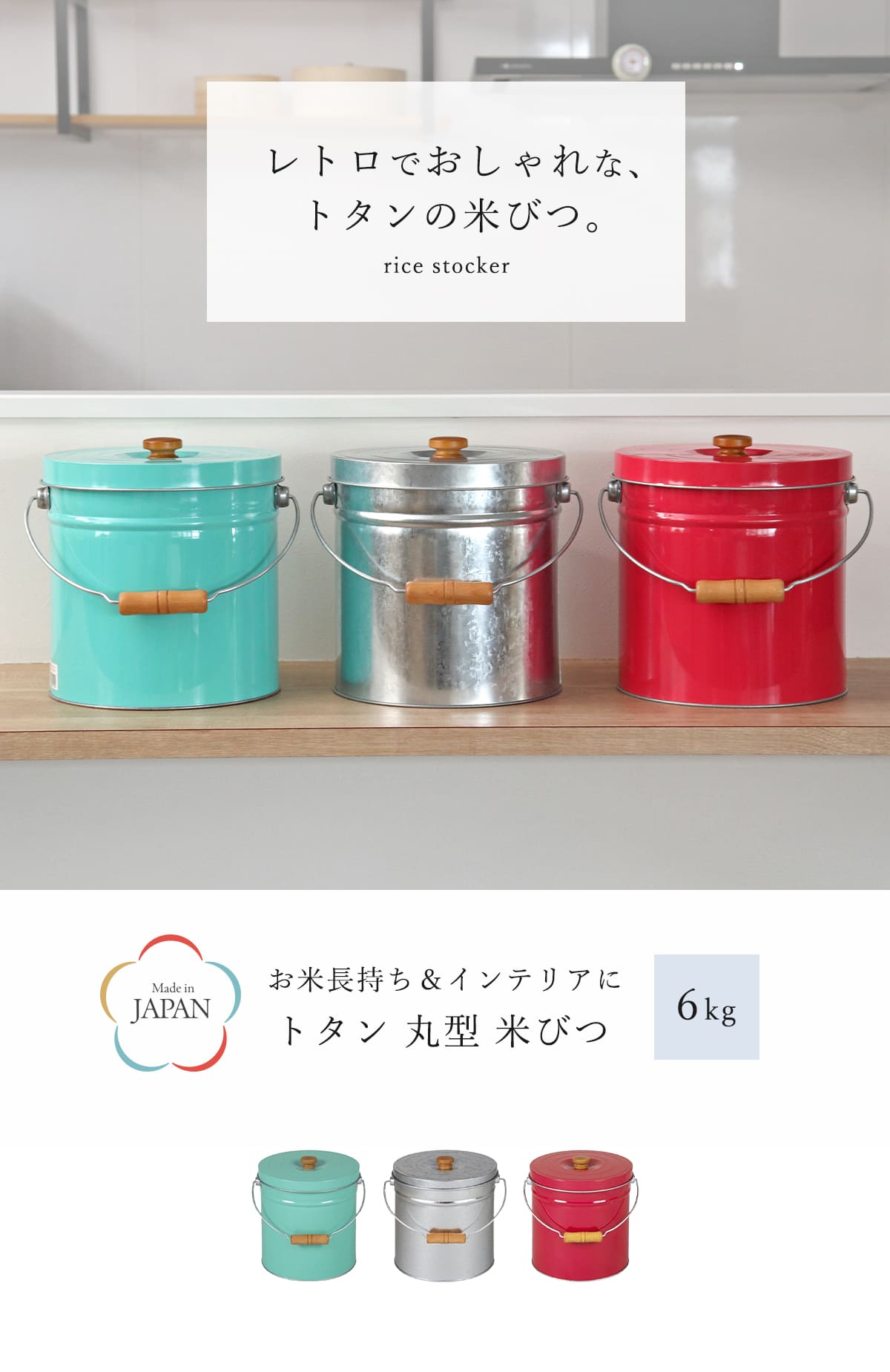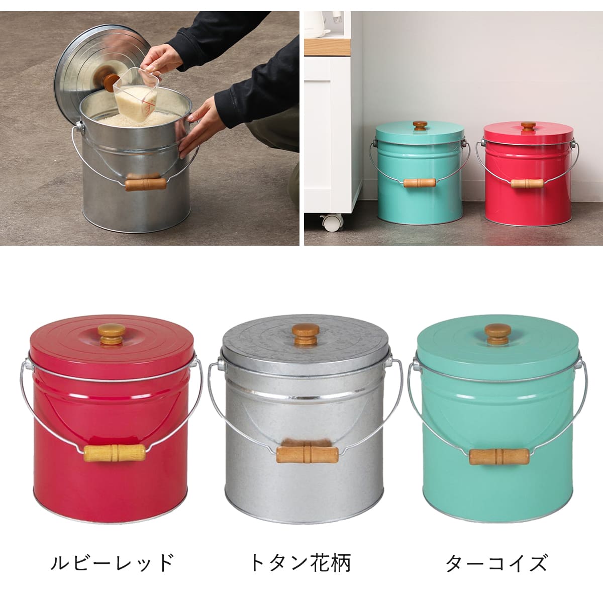 米びつ 6kg 丸型 トタン 袋のまま ( 米櫃 ブリキ 缶 ライスボックス ライスストッカー ペットフードストッカー 5kg 日本製 米ストッカー お米保存 6キロ 袋ごと そのまま ペットフード ドッグフード おしゃれ レトロ ) 【トタン花柄】