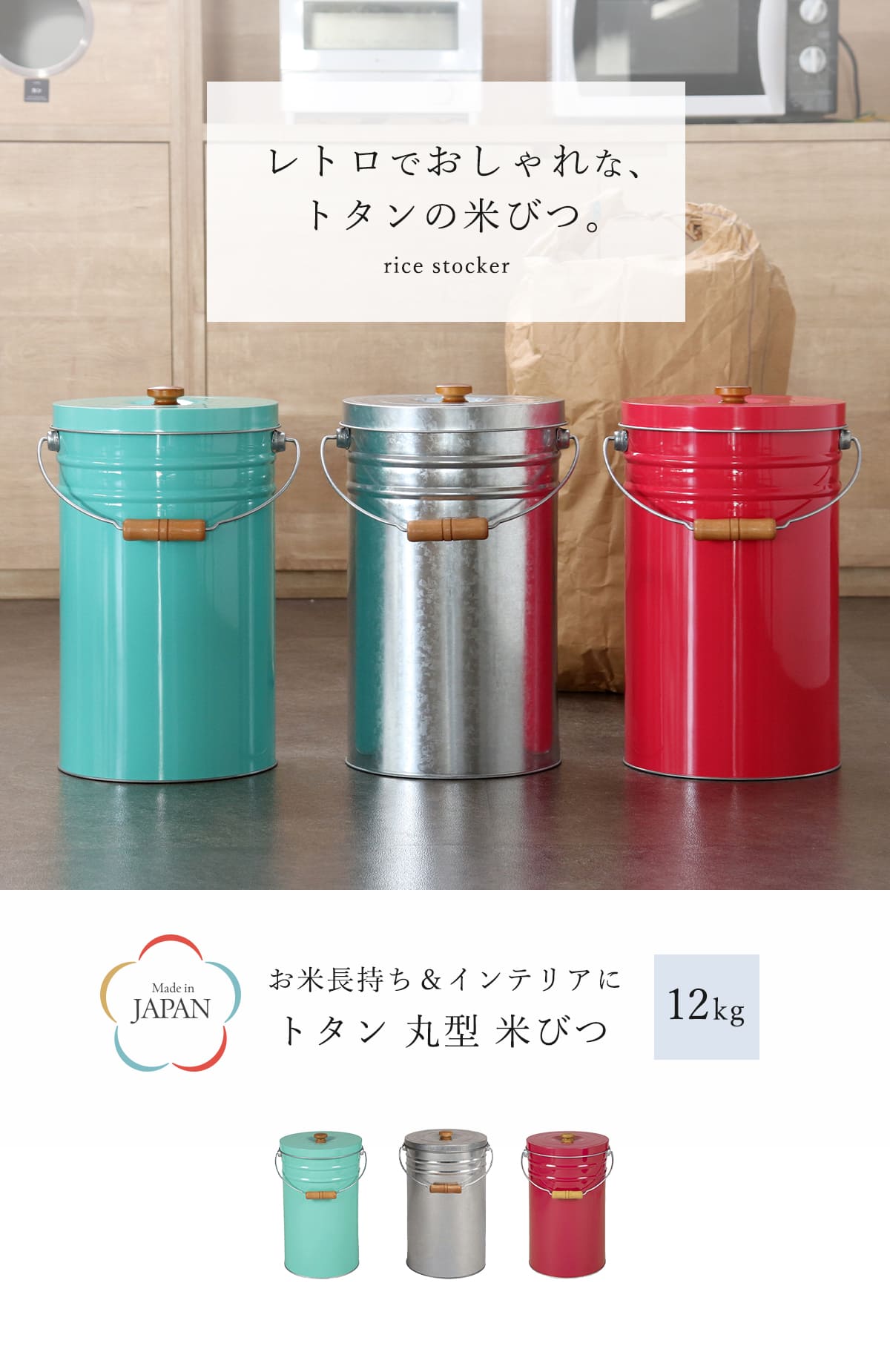 ![]() 米びつ 6kg | ![]() 米びつ 12kg 【▲このページの商品】 | ![]() 米びつ 20kg |